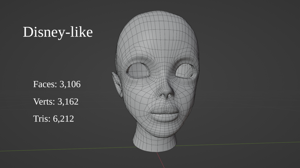 The 3D models is composed between 2.2k+ and 3.1k+ faces, 2.1k+ and 3.1k+, and 4.3k+ and 6.2k+ tris.